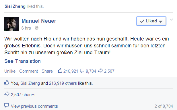 Manuel Neuer på Facebook: Vi må tage os sammen Admin9. juli 2014Tyskland Indlæg navigation ForrigeNæste Del dette: Share on X(Åbner i et nyt vindue) X Del på Facebook(Åbner i et nyt vindue) Facebook Like Henter... Relateret