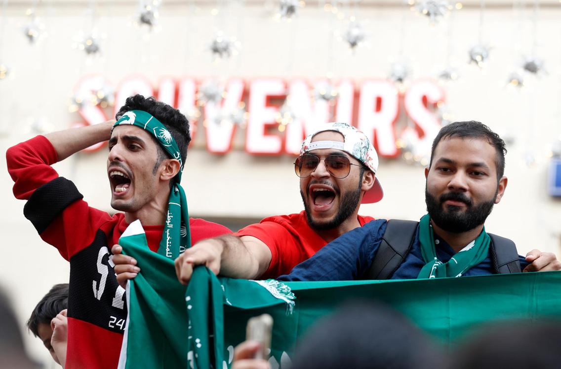 Det kan godt være at de ikke er favoritter, men det er de saudi arabiske fans vist ligeglade med.